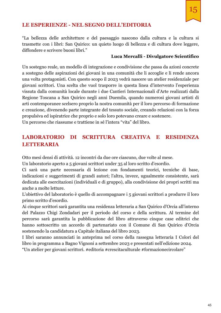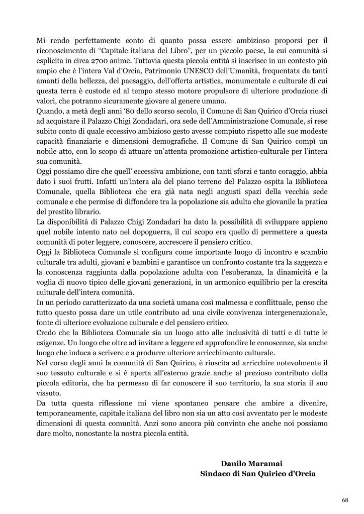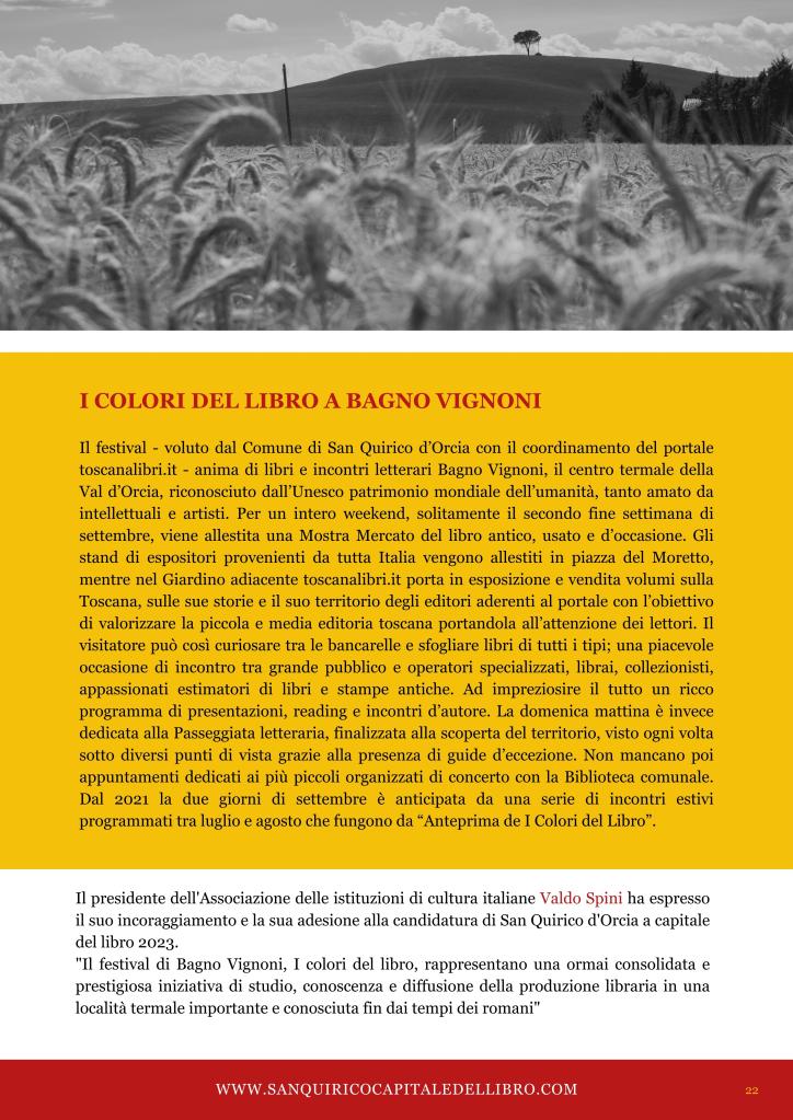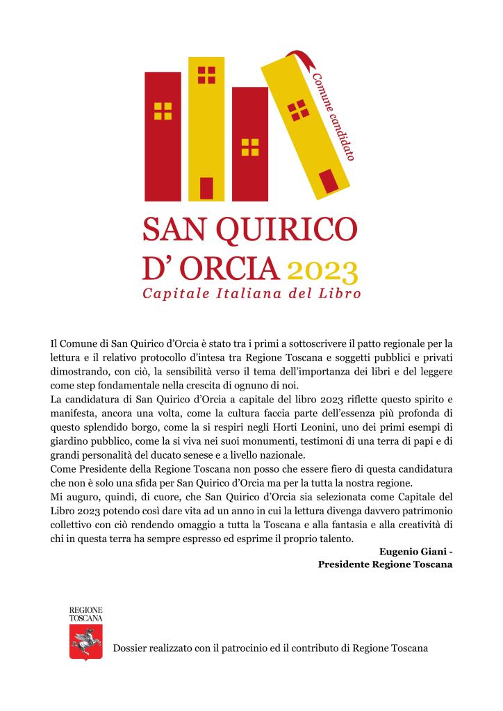 San Quirico d'Orcia Comune candidato a Capitale Italiana del Libro 2023